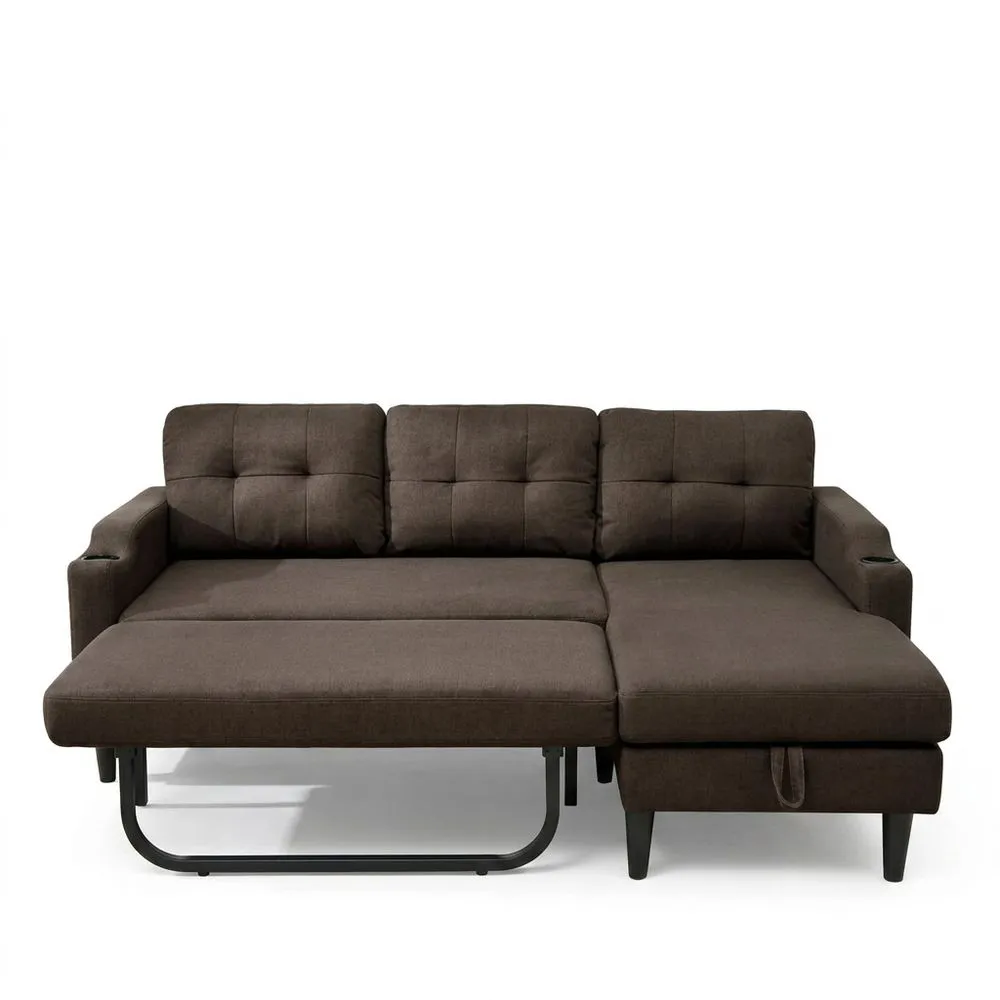 Gestell aus hellgrauer Eiche, Bezug aus Polyestergewebe, L-förmiges Sofa, 280 cm