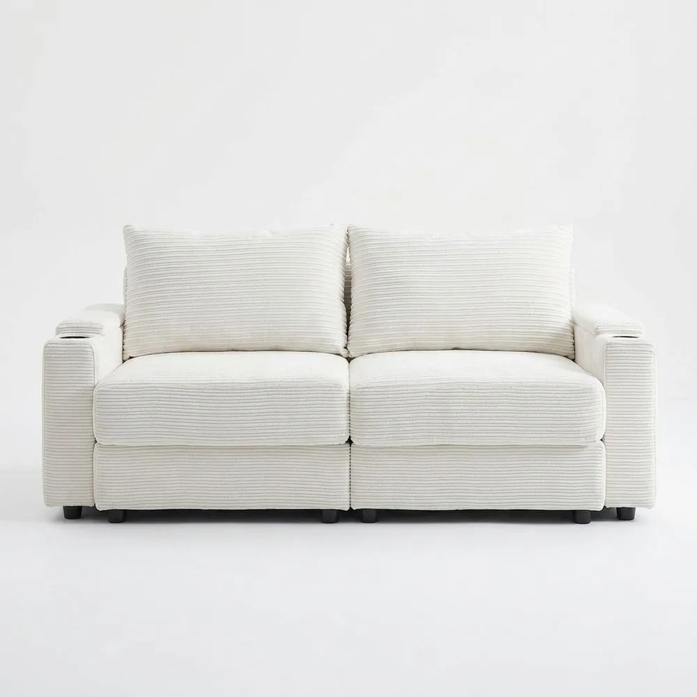 Zweisitzer Sofa Cordstoff Weiß 200x100x80 cm