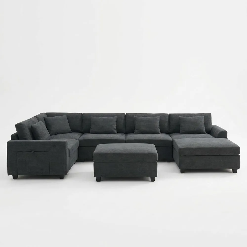 Dunkelgraue modulare Ecksofa-Garnitur aus Polyesterfaser