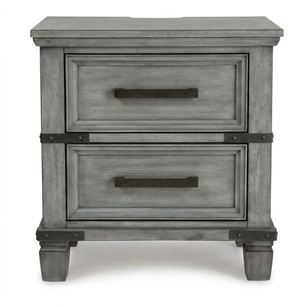 Nachttisch aus grauem Buchenholz mit 2 Schubladen