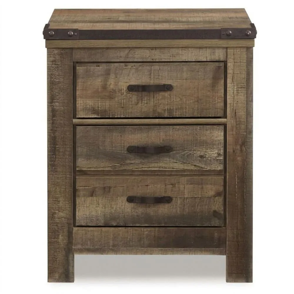 Nachttisch Holzoptik Beige mit 3 Schubladen