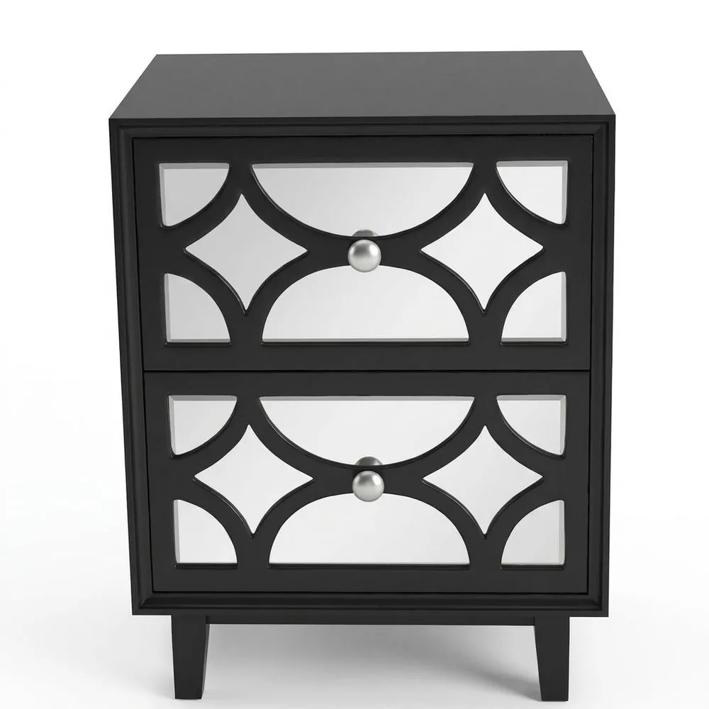 Schwarzer Nachttisch mit Spiegelfronten und 2 Schubladen