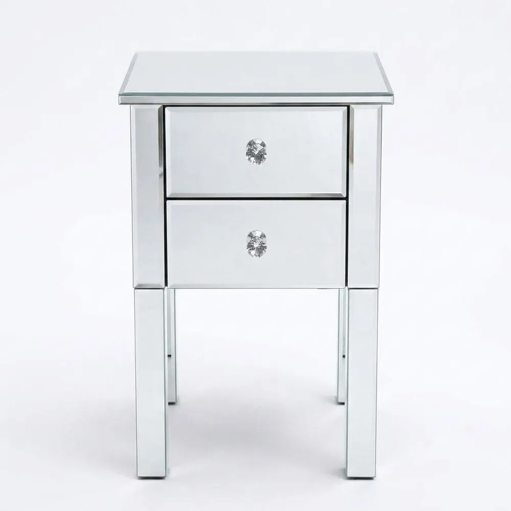 Verspiegelter Nachttisch mit 2 Schubladen Glas Silber