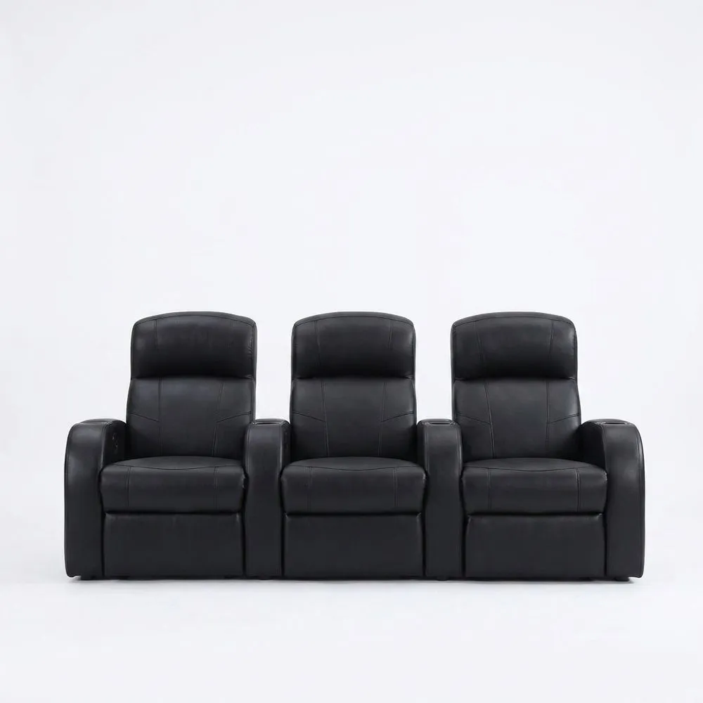 3-Sitzer Heimkino-Sofa Leder Schwarz
