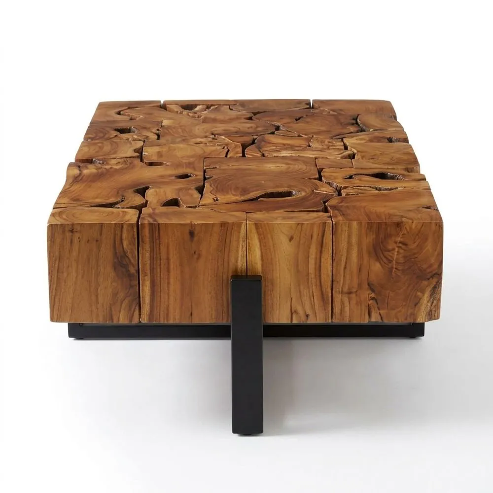 80 cm quadratischer Couchtisch aus Teakholz und Stahl