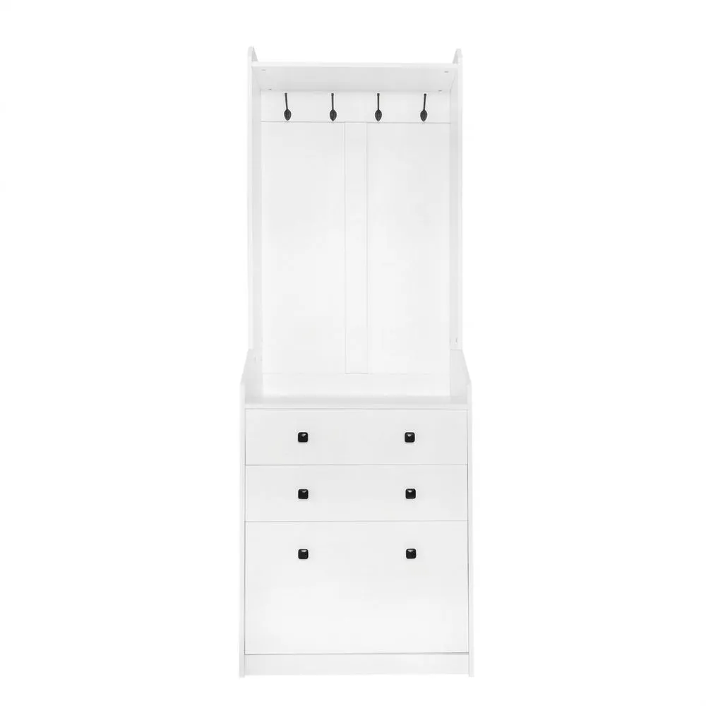Garderoben-Set MDF Weiß mit 3 Schubladen und 4 Haken