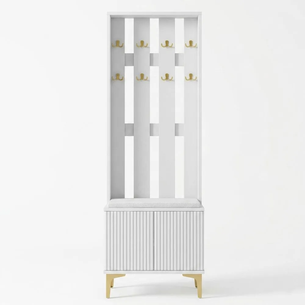 Garderobenständer MDF Weiß mit Sitzbank und Haken
