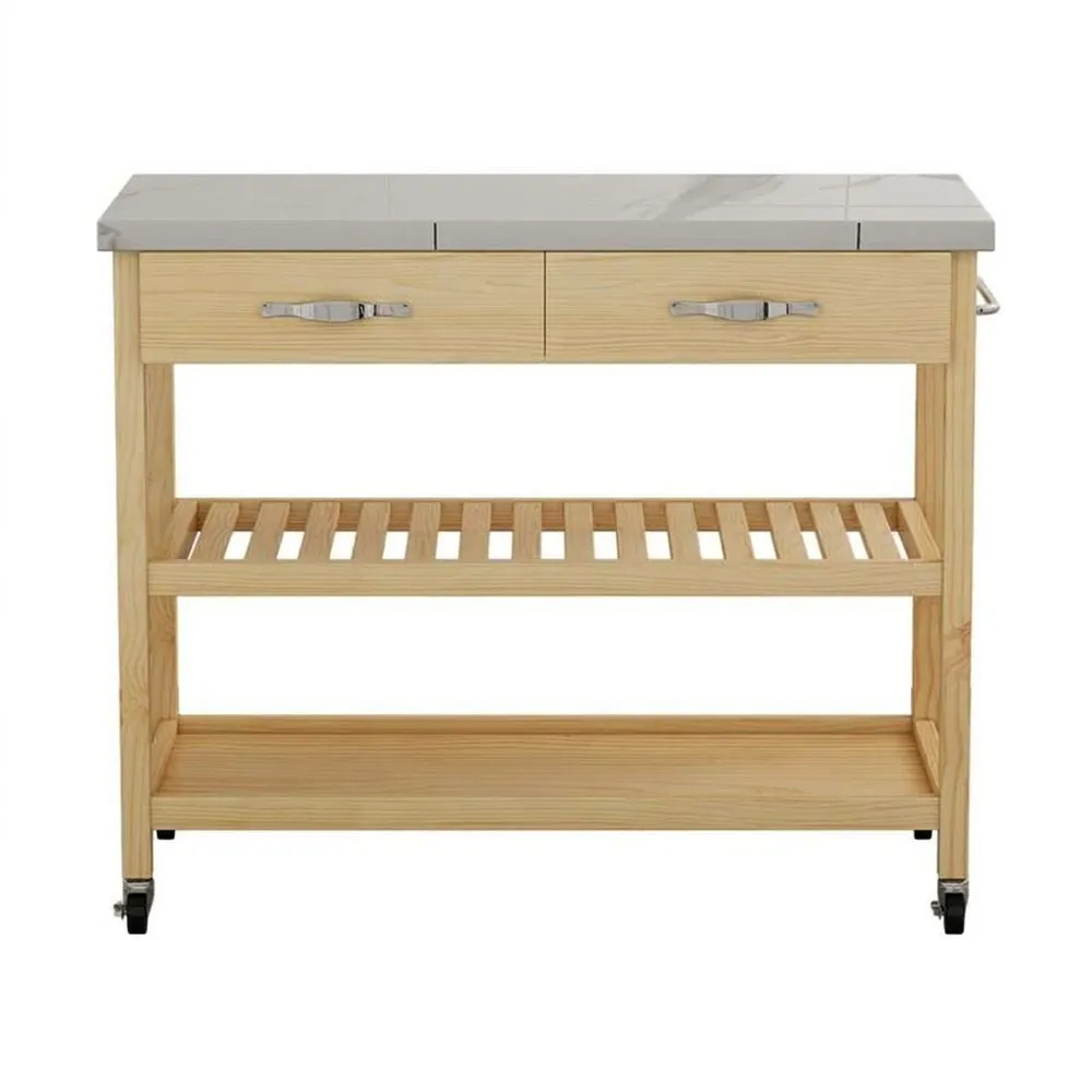 Küchenwagen Edelstahlplatte Naturholz Rollbar mit 2 Schubladen