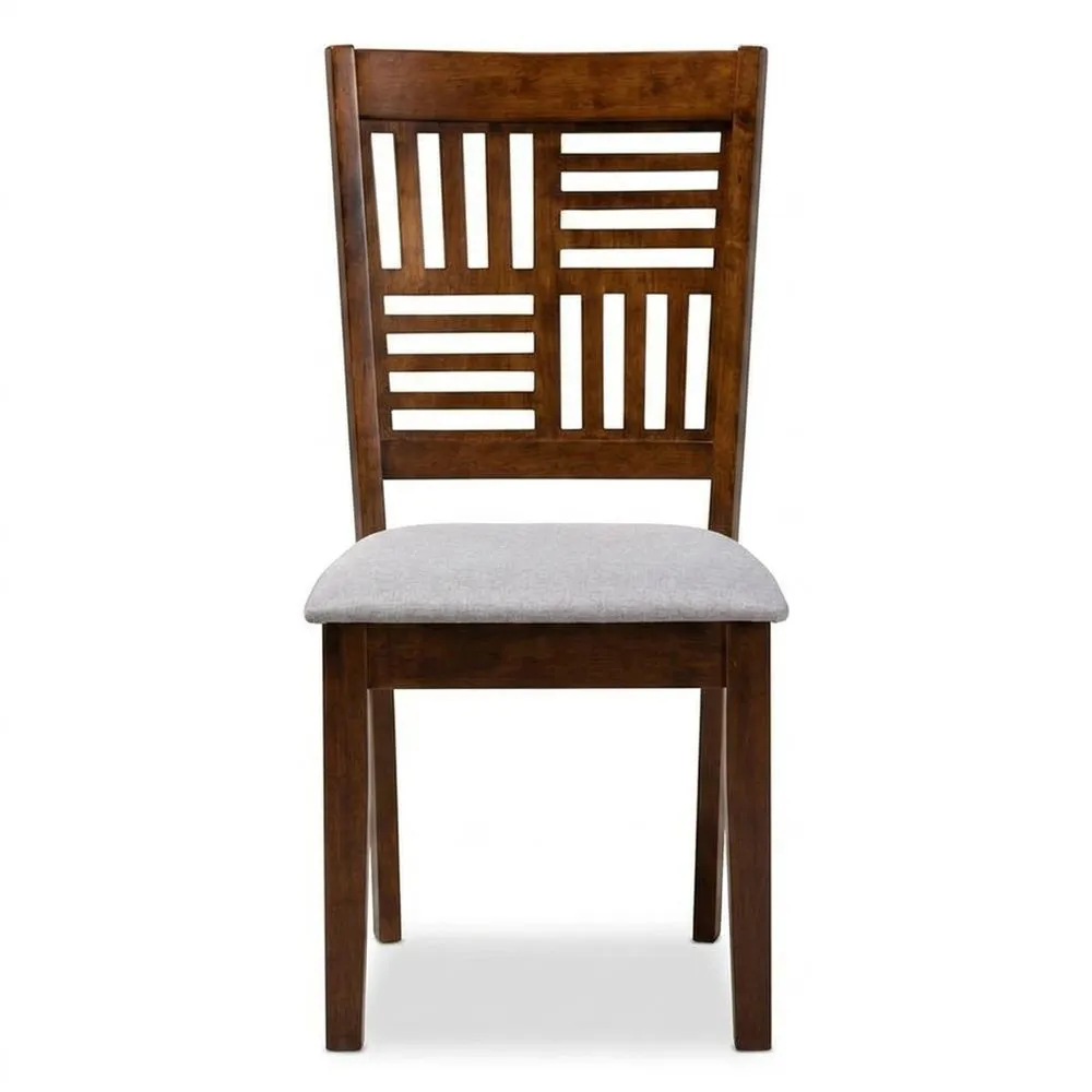 Stuhl aus braunem Massivholz und Polyestergewebe